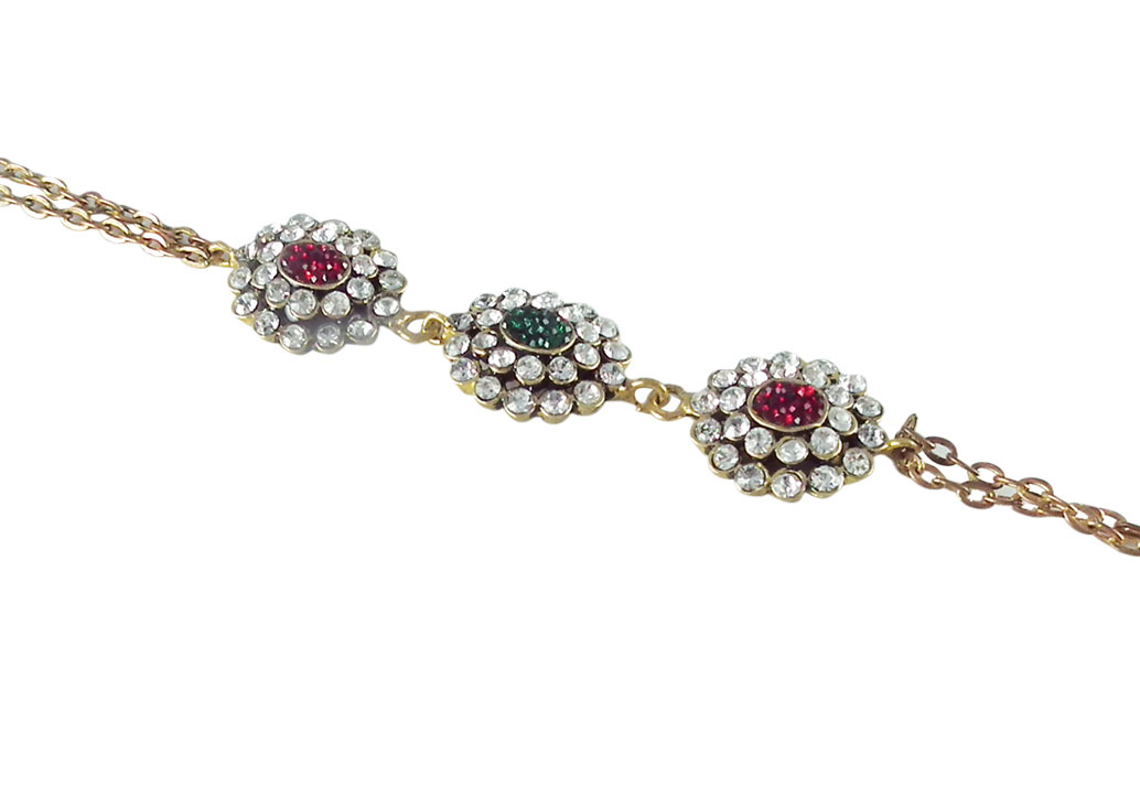 OTANTİK BİLEKLİK 1 AD. BİLEKLİK KÖK YAKUT VE ZÜMRÜT TAŞLARIN ÇEVRESİ KRİSTAL ŞEFFAF TAŞLARLA SÜSLENMİŞTİR.