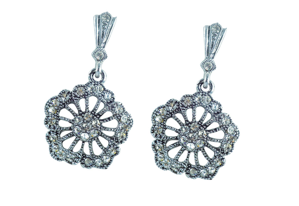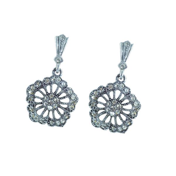 TELKARİ ÇİÇEK KÜPE 1 ÇİFT KÜPE ŞEFFAF KRİSTAL TAŞLARLA SÜSLENMİŞTİR. TELKARİ FORMU VERİLMİŞTİR.