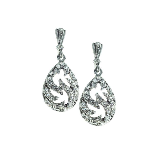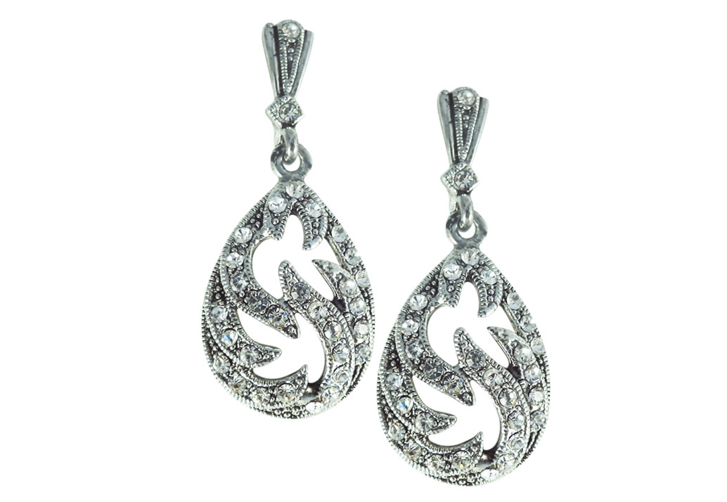 TELKARİ DAMLA KÜPE 1 ÇİFT KÜPE ŞEFFAF KRİSTAL TAŞLARLA SÜSLENMİŞTİR. TELKARİ FORMU VERİLMİŞTİR.