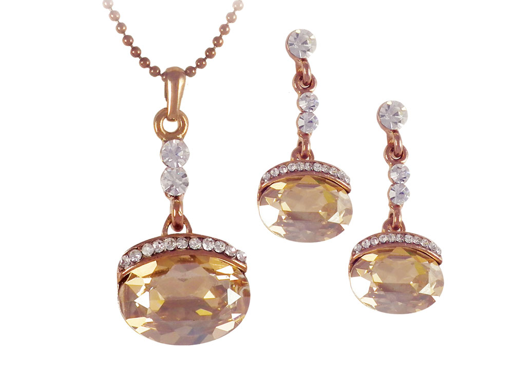 ELİPS TAŞLI SET 1 ad. Kolye & 2ad. Küpe KRİSTAL ŞEFFAF TAŞLARLA SÜSLENMİŞTİR.