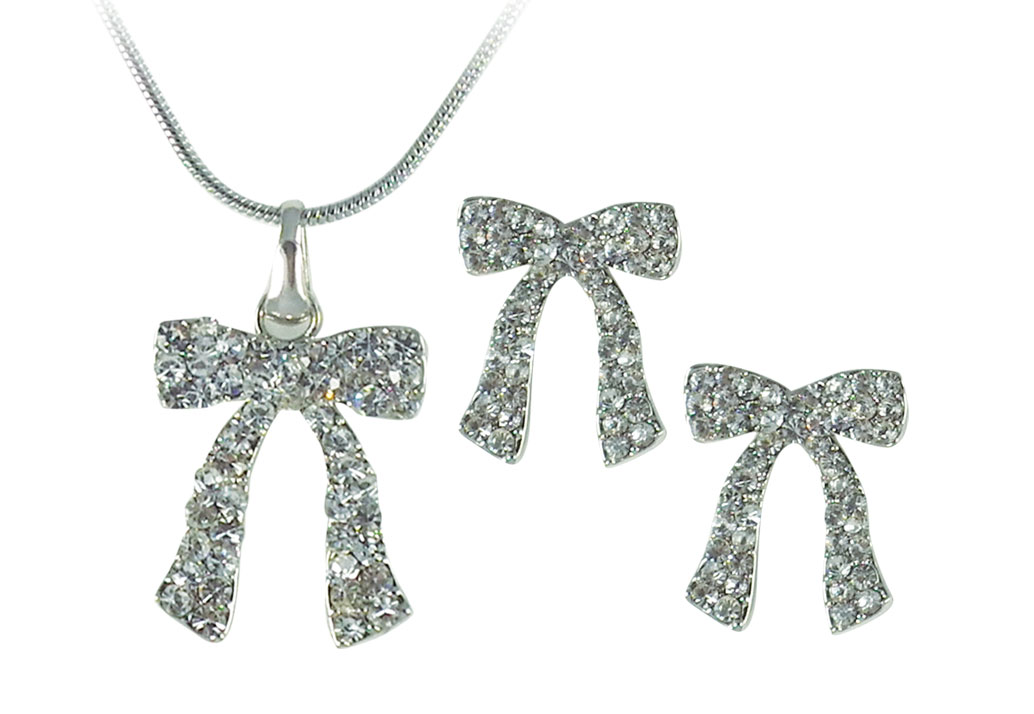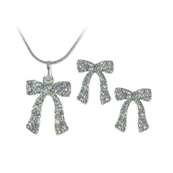 FİYONK SET 1 ad. Kolye & 2ad. Küpe KRİSTAL ŞEFFAF TAŞLARLA SÜSLENMİŞTİR.