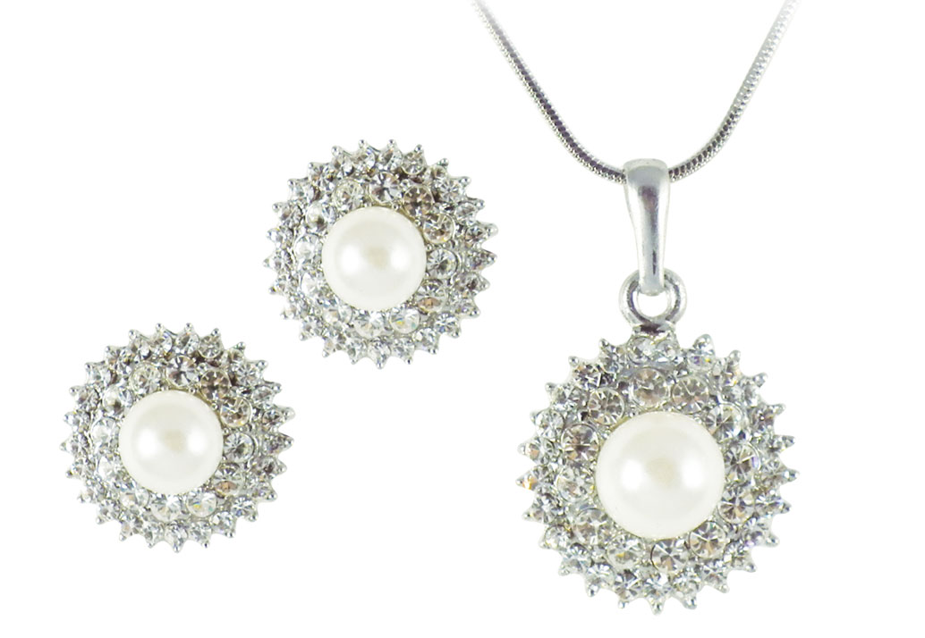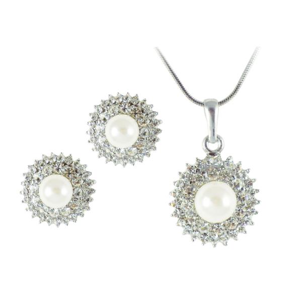 İNCİ TANESİ SET 1 ad. Kolye & 2ad. Küpe KRİSTAL ŞEFFAF TAŞLARLA SÜSLENMİŞTİR.