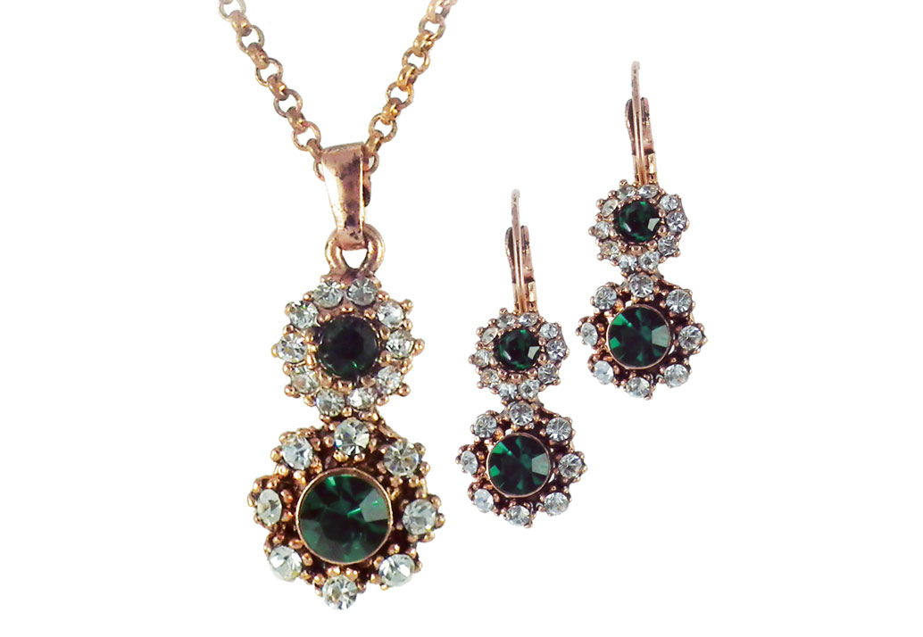 OTANTİK SET 1 ad. Kolye & 2ad. Küpe KRİSTAL ŞEFFAF TAŞLARLA SÜSLENMİŞTİR.