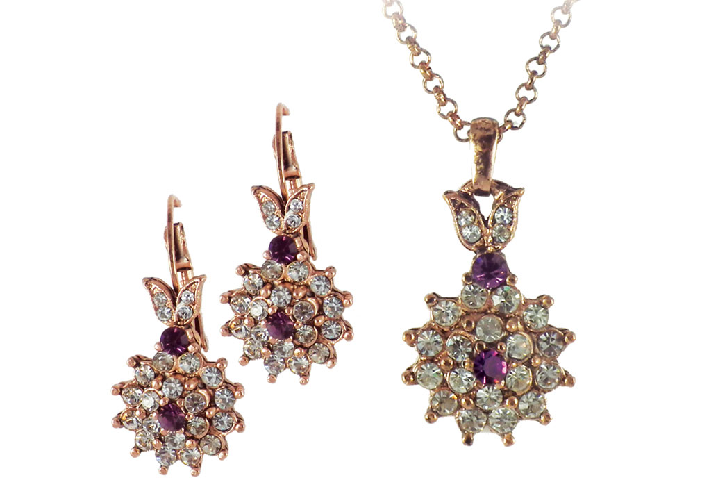 OTANTİK SET 1 ad. Kolye & 2ad. Küpe KRİSTAL ŞEFFAF TAŞLARLA SÜSLENMİŞTİR.