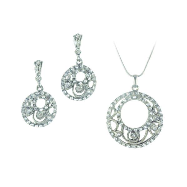 TELKARİ SET 1 ad. Kolye & 2ad. Küpe KRİSTAL ŞEFFAF TAŞLARLA SÜSLENMİŞTİR.
