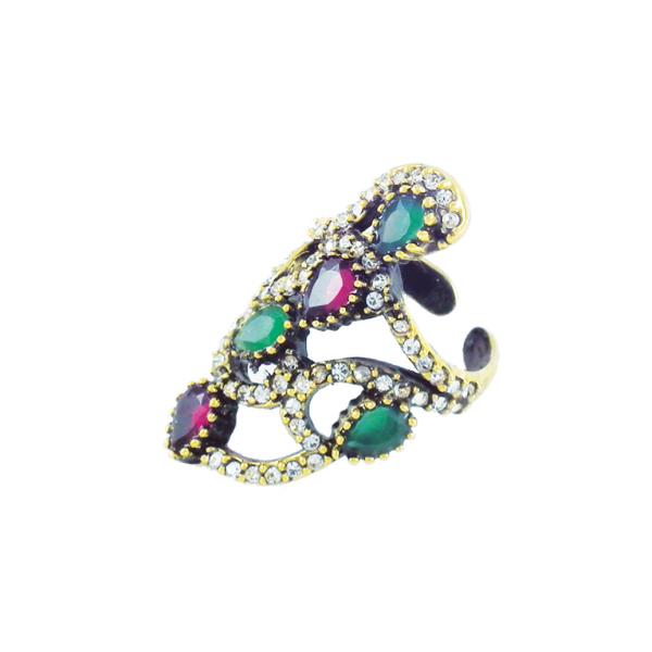 OTANTİK YÜZÜK KÖK YAKUT VE ZÜMRÜT TAŞLARIN ÇEVRESİ KRİSTAL TAŞLARLA SÜSLENMİŞTİR. EL ŞEKLİNDE TASARLANMIŞTIR AYARLI KÖK YAKUT VE ZÜMRÜT TAŞLARIN ÇEVRESİ KRİSTAL TAŞLARLA SÜSLENMİŞTİR. EL ŞEKLİNDE TASARLANMIŞTIR