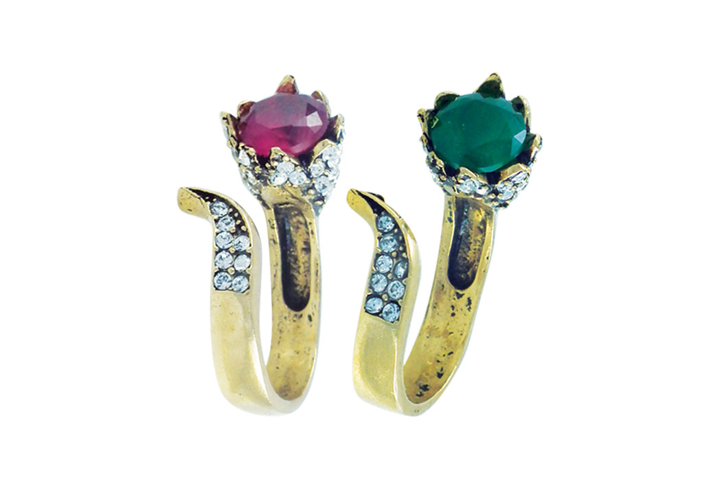 OTANTİK YÜZÜK AYARLI KÖK ZÜMRÜT TAŞIN ÇEVRESİ KRİSTAL TAŞALARLA ÇEVRİLMİŞTİR.
