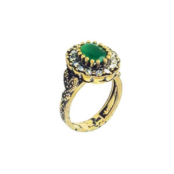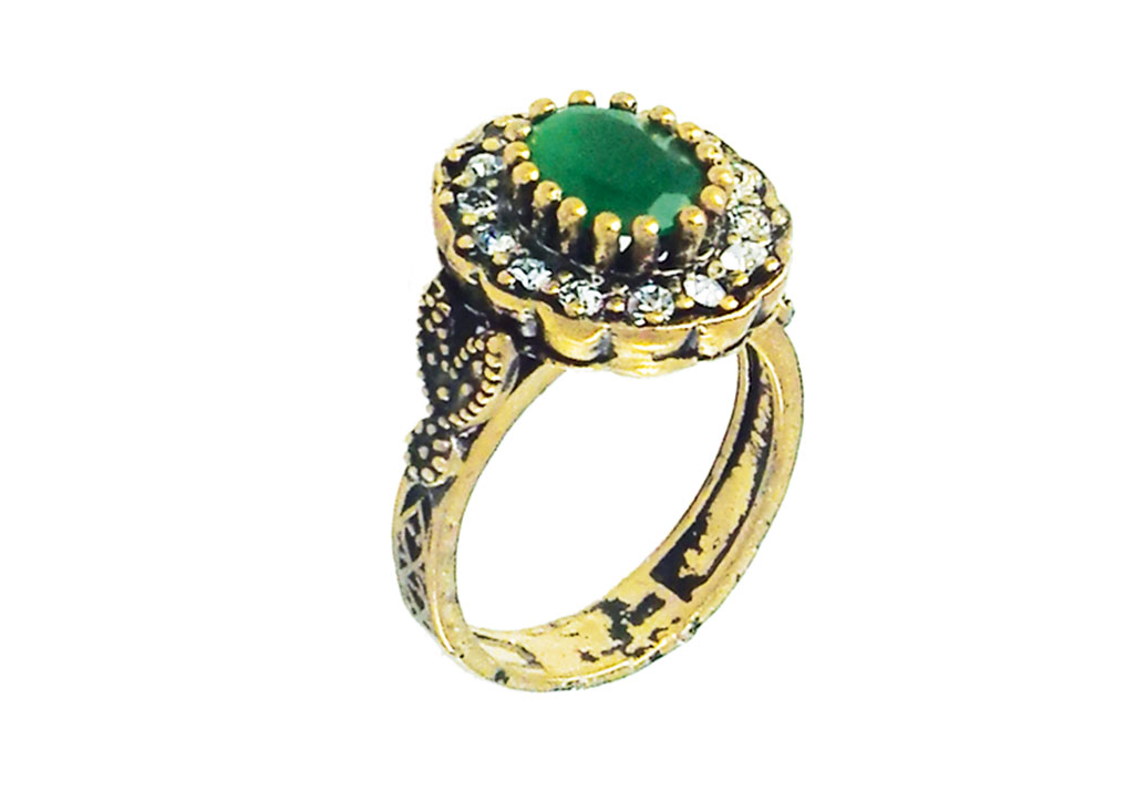 OTANTİK YÜZÜK 7-8-9 KÖK ZÜMRÜT TAŞIN ÇEVRESİ KRİSTAL TAİŞALARLA ÇEVRİLMİŞTİR.