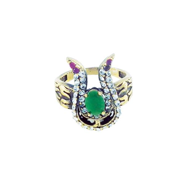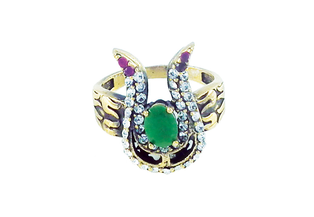 OTANTİK YÜZÜK 7-8-9 KÖK ZÜMRÜT TAŞIN ÇEVRESİ KRİSTAL TAİŞALARLA ÇEVRİLMİŞTİR. LALE FORMU VERİLMİŞ BİR YÜZÜKTÜR.
