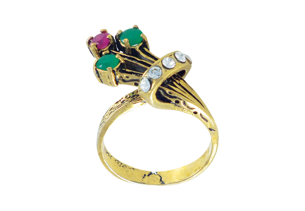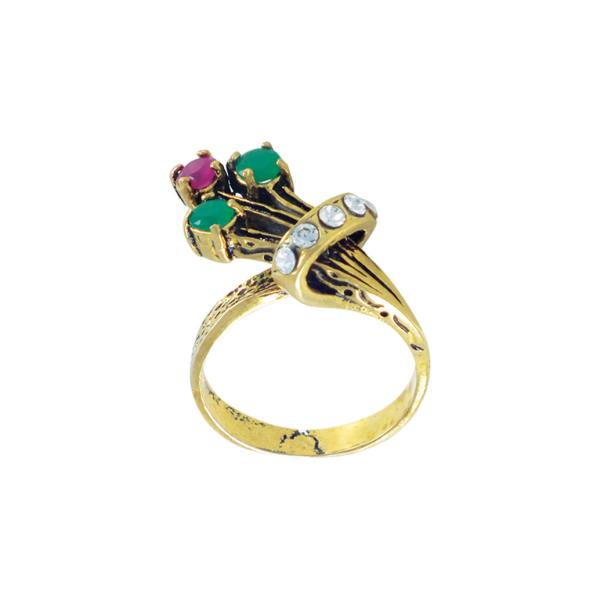 OTANTİK YÜZÜK 7-8-9 MODERN FORMA SAHİP YÜZÜĞÜN KÖK YAKUT VE ZÜMRÜT TAŞININ ÇEVRESİ KRİSTAL TAŞALARLA ÇEVRİLMİŞTİR.