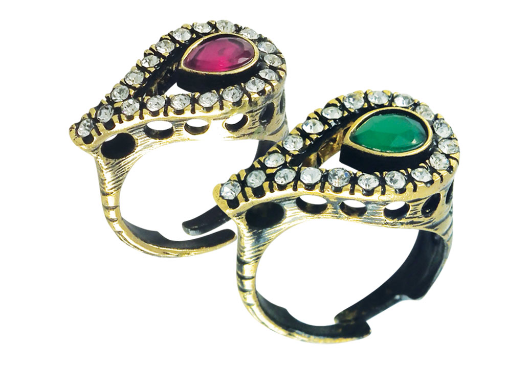 OTANTİK YÜZÜK AYARLI KÖK YAKUT VEYA KÖK ZÜMRÜT TAŞIN ÇEVRESİ KRİSTAL TAİŞALARLA ÇEVRİLMİŞ OLARAK İKİ SEÇENEĞİ BULUNMAKTADIR.