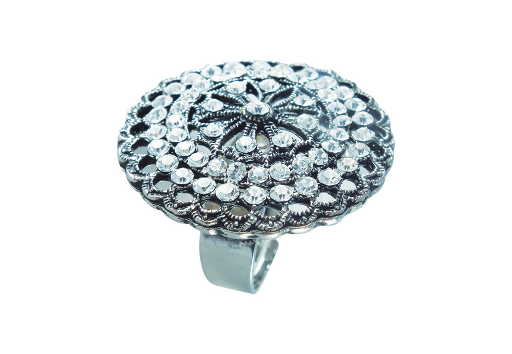 TAŞLI TELKARİ YÜZÜK AYARLI KRİSTAL TAŞLARLA SÜLENEREK TASARLANMIŞTIR.