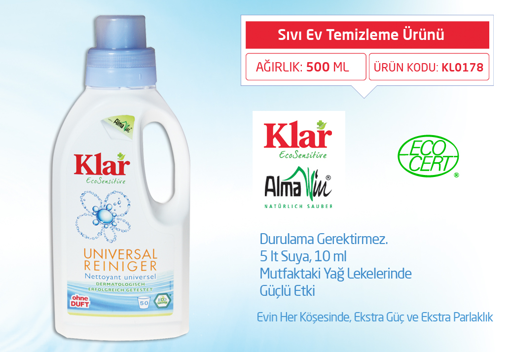 Sabun izi bırakmaksızın, suya dayanıklı tüm düz yüzeyleri, plastik maddeleri, cilalı yüzeyleri, mobilyaları, taş zeminleri, duvar ve yer fayanslarını temizler